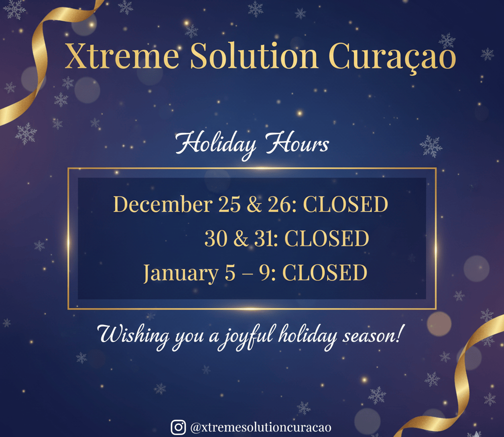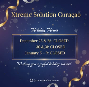 We encourage you to reach out with any urgent requests before our scheduled closures so we can assist you promptly. While our office is closed, you can still follow us on Instagram @xtremesolutioncuracao for updates.